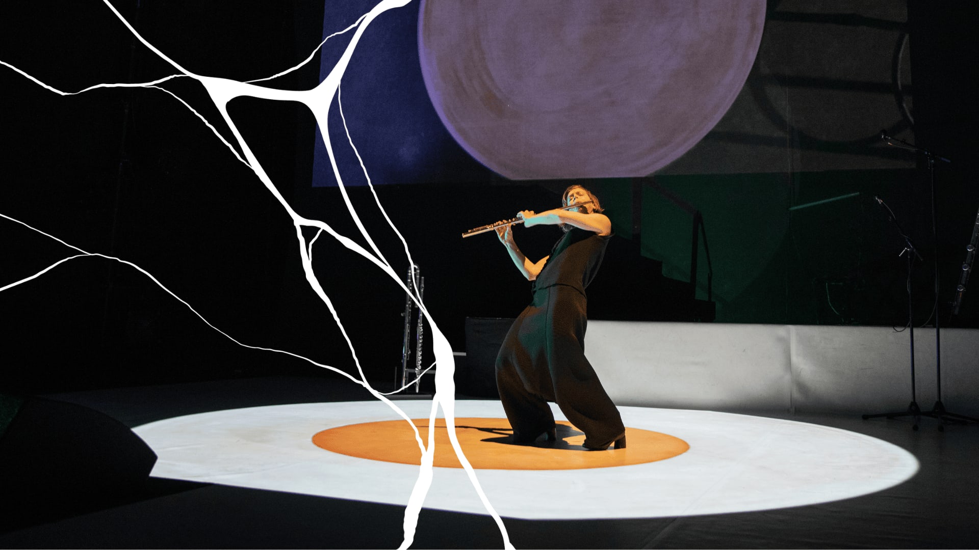 Chase’s performances are all-encompassing experiences in which acoustic and electronic sound merge into a single sonic space. The flute is not merely an instrument, but a source of sound that can be breathy, raw, whispering, or explosive. Electronics introduce invisible layers, as if there were multiple performers on stage at the same time. The atmosphere is intense, exploratory, and hypnotic: the listener is invited into the heart of the sound.